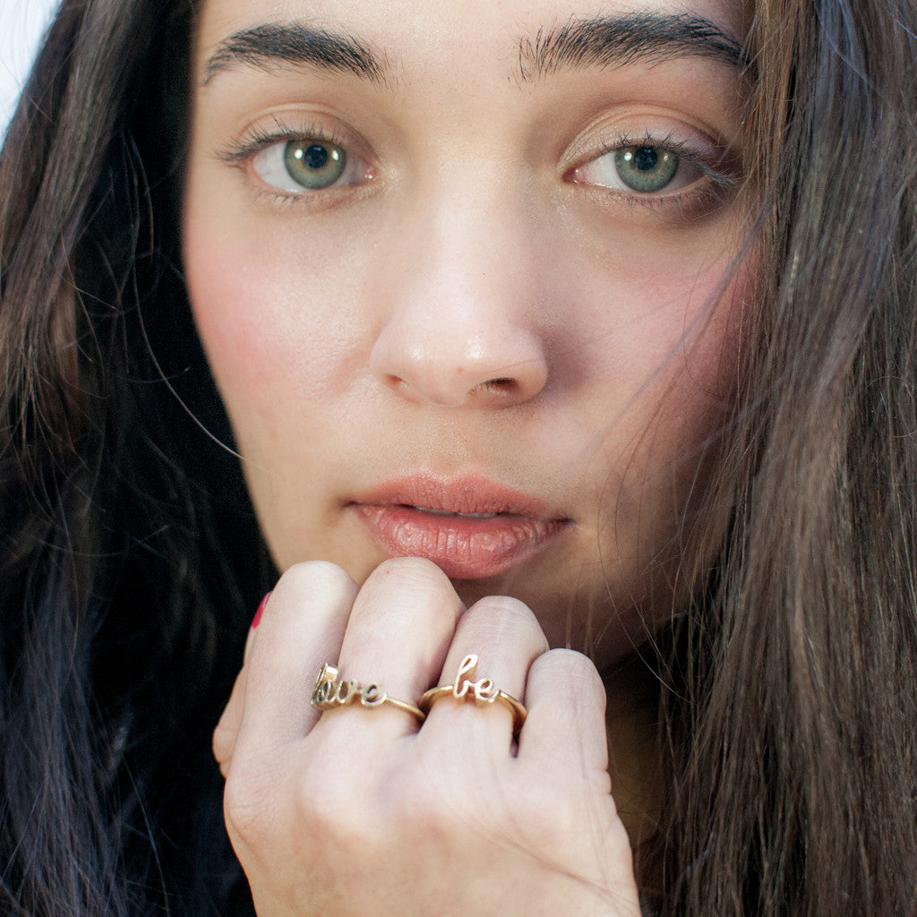 Shh...if you want to say it softly, say it with our precious rings. Wrap style around your finger with tiny letters and secret words, 3D printed in precious metal. Choose between sterling silver or 18k gold-plated brass